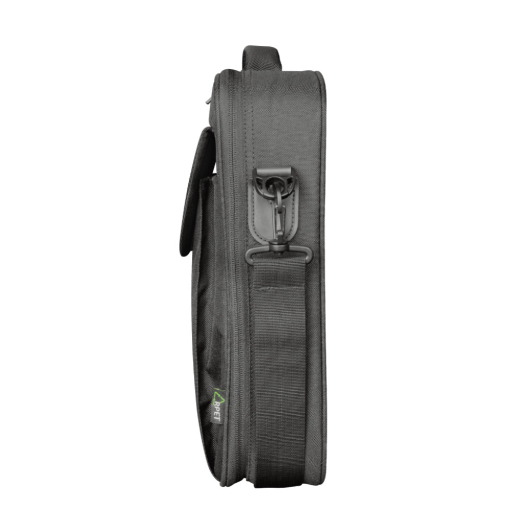 Prenosnik naj bo varen v velikem, oblazinjenem predelku. V dodatnih oddelkih shranite svojo dodatno opremo, zunanje naprave in osebne predmete. Varujte okolje zaradi recikliranega materiala, iz katerega je izdelana ta torba za prenosnik. Trust Atlanta je narejen iz 18 recikliranih steklenic PET, zaradi česar je okolju prijazna.