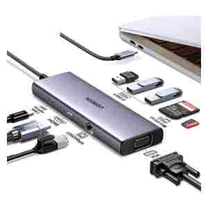 UGREEN USB C Hub, 10-v-1 USB-C z dvojnim izhodom za zaslon 4K HDMI & VGA, 100W PD