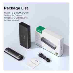 Ugreen HDMI stikalo 4K@60Hz, razdelilnik 3 v 1 s HDR+ podporo