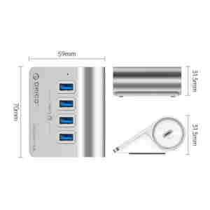 USB-C hub s 4 vhodi, 4x USB-A 3.2 Gen1, 5Gbps, ALU, ORICO M3U4-05