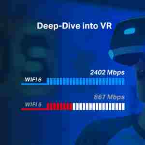 Neprimerljiva hitrost Wi-Fi 6 – prekine gigabitno oviro s hitrostjo do 2402 Mbps (5 GHz) + 574 Mbps (2,4 GHz)