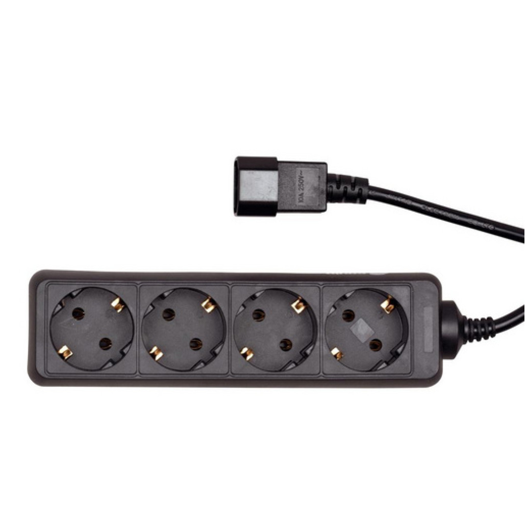 - S pomočjo tega razdelilca lahko uporabite navadne šuko vtičnice oz. originalne kable naprav, ki jih želite priklopiti na UPS.