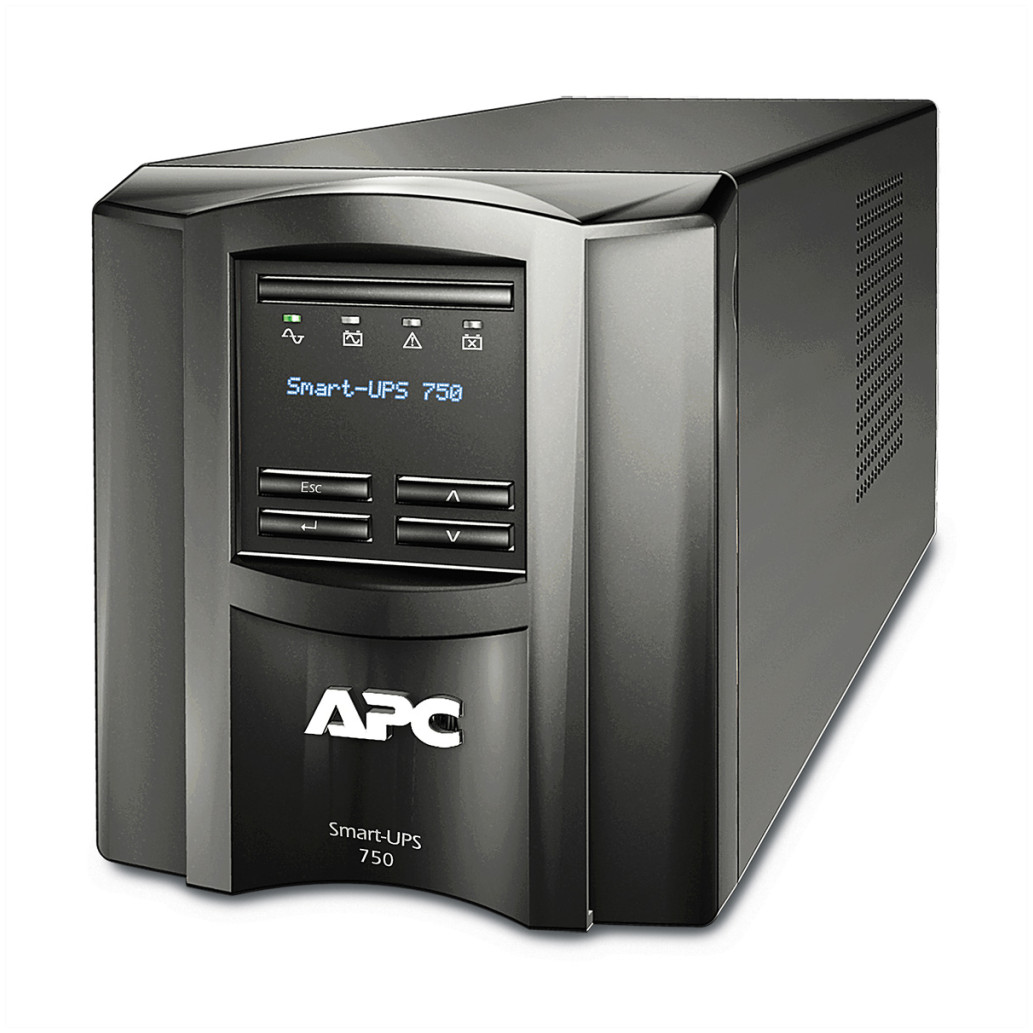 APC SMT750IC. Topologija UPS: Line-interactive, Izhodna zmogljivost: 0,75 kVA, Izhodna moč: 500 W. Vrste AC konektorjev: C13 spojnik, Priključki: C14 spojnik, Število AC vtičnic: 6 AC vtičnic. Tehnologija baterije: svinčene hermetično (VRLA) Tipična rezervno čas pri polni obremenitvi: 4.6 min, Tipična rezervno časa pri polovični obremenitvi: 15,8 min oblika faktor. Stolp, Barva izdelka: črna, Dolžina kabla. 1,83 m Širina: 138mm , Globina: 358 mm, Višina: 157 mm