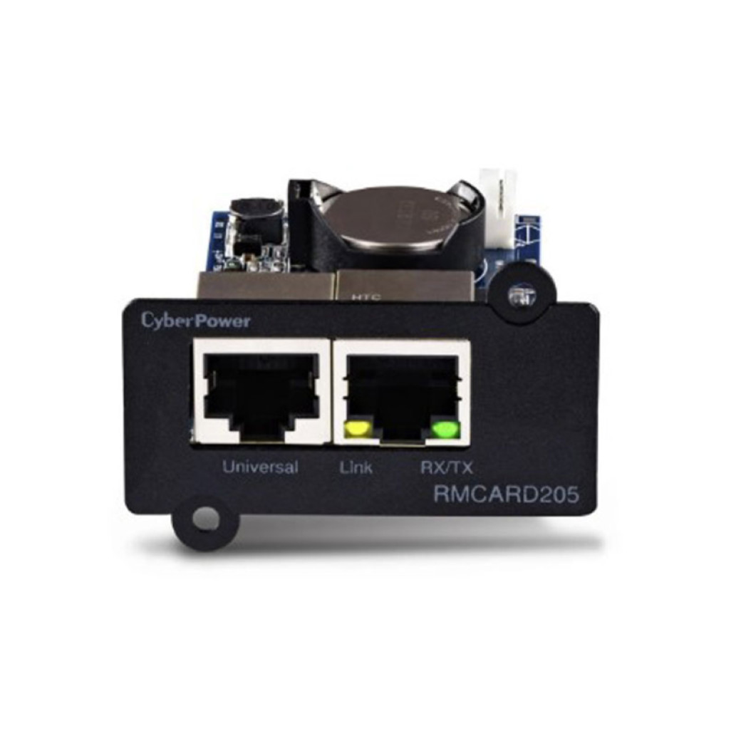 CyberPower RMCARD205, polno funkcionalna kartica za upravljanje omrežja, na daljavo upravlja, spremlja in nadzoruje izbrane CyberPower UPS sisteme in ATS PDU prek standardnega spletnega brskalnika, vmesnika ukazne vrstice (CLI), SNMP ali sistema za upravljanje omrežja (NMS). RMCARD205, ki je še posebej primeren za podjetniške namestitve, omogoča načrtovanje izklopa, zagona in ponovnega zagona UPS-a, skupaj z nastavitvami dejanj dogodkov, beleženjem dogodkov, beleženjem stanja in samodejnimi obvestili o dogodkih po e-pošti, SMS, SNMP pasti ali Syslogu. Programska oprema PowerPanel Business Edition Client ščiti strežnike in delovne postaje pred izgubo podatkov zaradi izpada električne energije tako, da sproži ukaz za samodejni izklop iz UPS-a, ko pride do izpada električne energije.