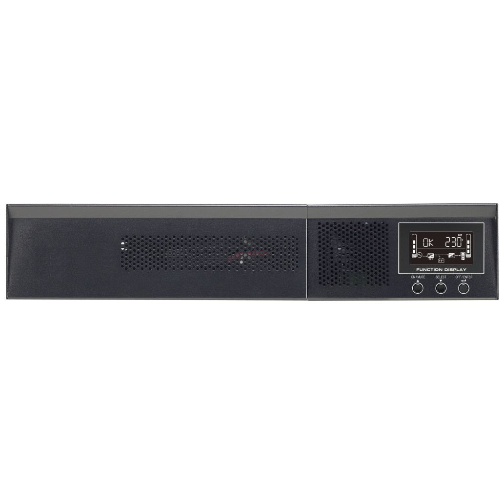 PowerWalker VFI 1000 RMG PF1. Topologija UPS: Dvojna pretvorba (online), Izhodna zmogljivost: 1 kVA, Izhodna moč: 1000 W. Vrste AC konektorjev: C13 spojnik, Konektorji: C14 spojnik, Serijski vmesnik: RS-232. Kapaciteta baterije: 7 Ah, Napetost baterije: 12 V, Tipičen čas rezervnega delovanja pri polni obremenitvi: 4,5 min. Oblika: Rackmount, Barva izdelka: Črna, Kapaciteta omare: 2U. Širina: 438 mm Globina: 410 mm Višina: 88 mm