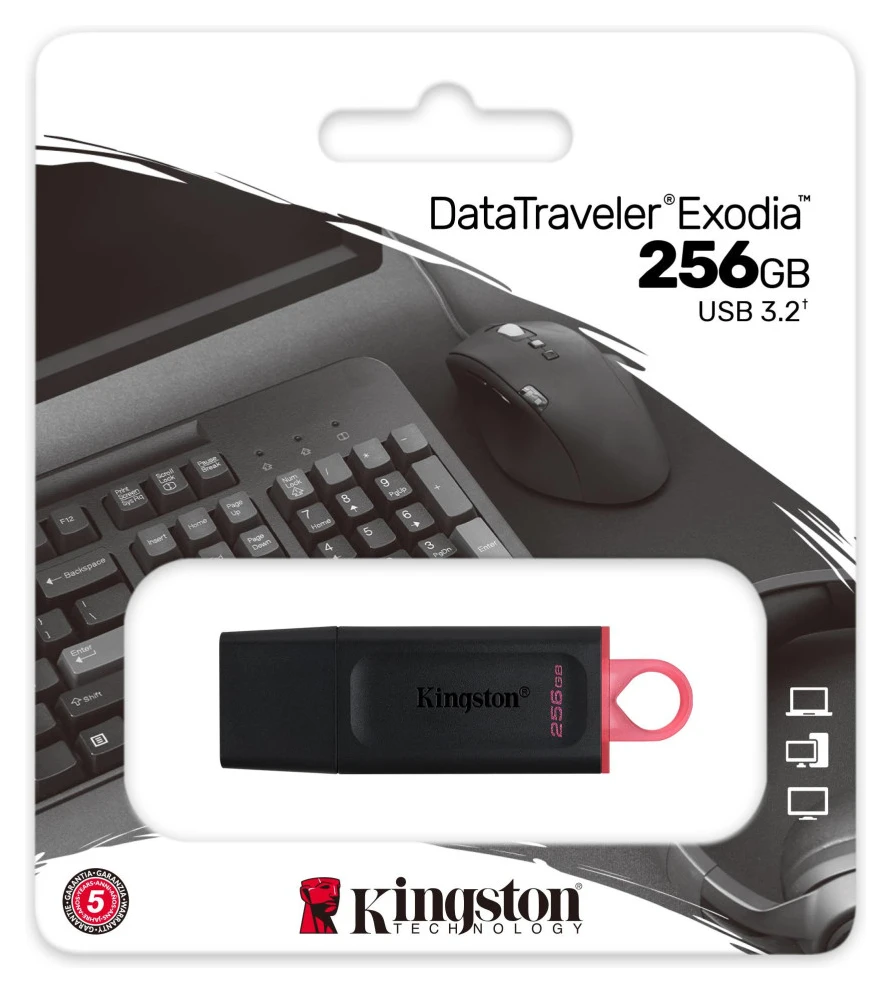 Kingstonov DataTraveler Exodia ima zmogljivost USB 3.2 Gen 1 za enostaven dostop do prenosnikov, namiznih računalnikov, monitorjev in drugih digitalnih naprav. DT Exodia omogoča hitre prenose in priročno shranjevanje dokumentov, glasbe, videoposnetkov in še več. Njegova praktična zasnova in modne barve naredijo idealen za vsakodnevno uporabo na delovnem mestu, domu, šoli ali kjerkoli morate vzeti svoje podatke.