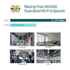 Izjemno hiter WiFi 6 hitrosti: sočasnih 574 Mb/s pri 2,4 GHz in 4804 Mb/s pri 5 GHz skupaj znaša 5378 Mb/s hitrosti WiFi.†