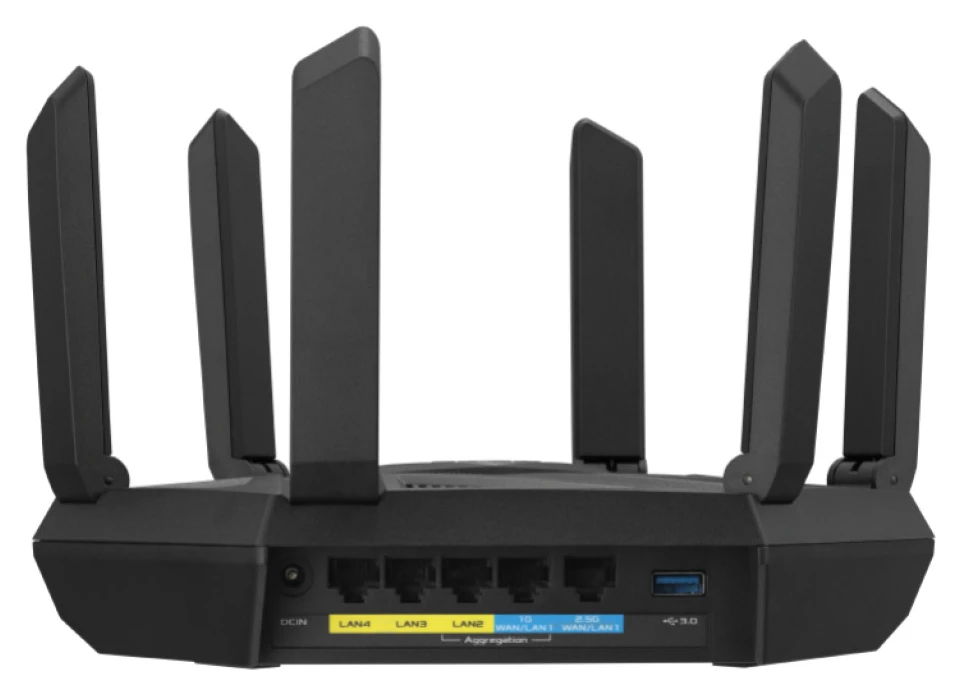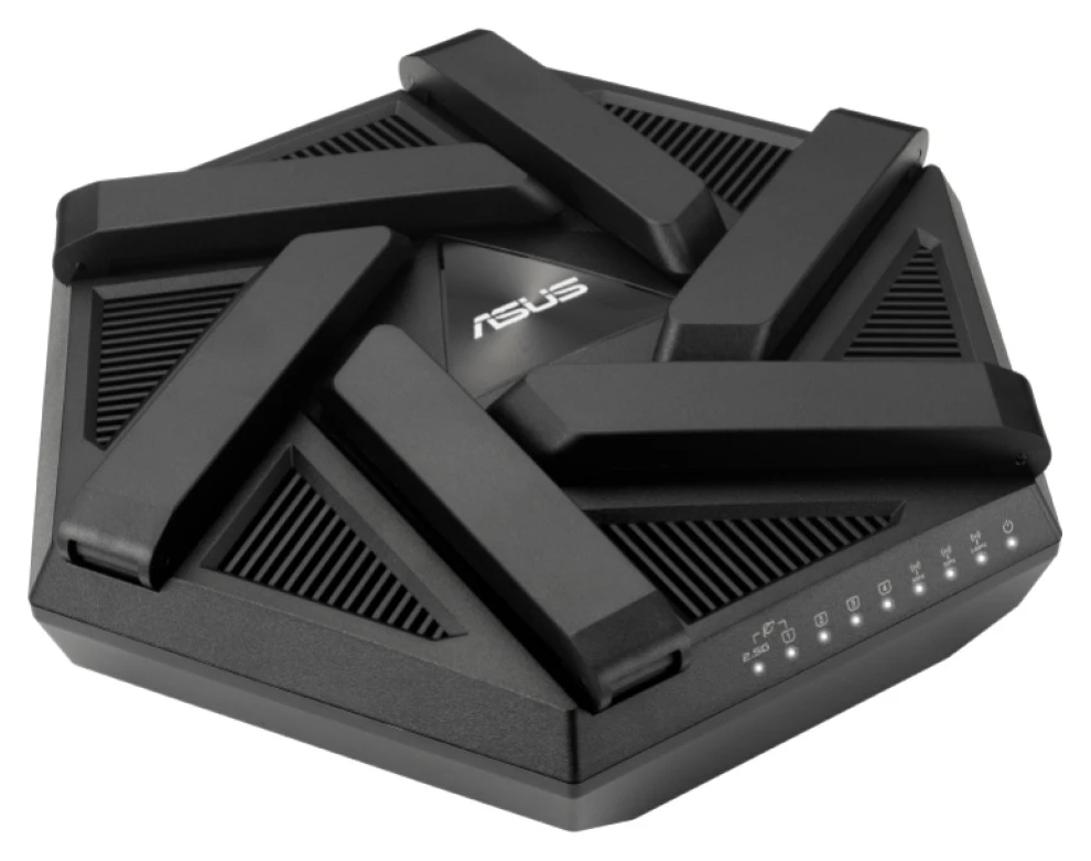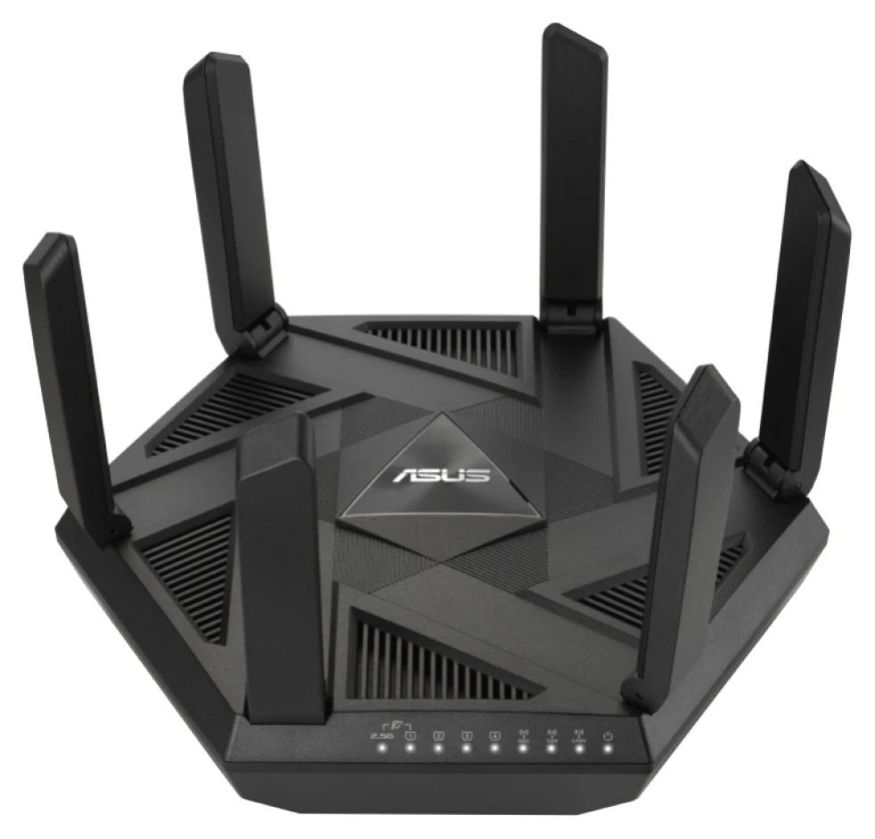AXE7800 Tri-band WiFi 6E (802.11ax) usmerjevalnik, nov 6GHz pas, ASUS varno brskanje, izboljšana omrežna varnost z AiProtection Pro in Instant Guard Sharable Secure VPN, brezplačen starševski nadzor, 2,5G vrata, združevanje povezav.