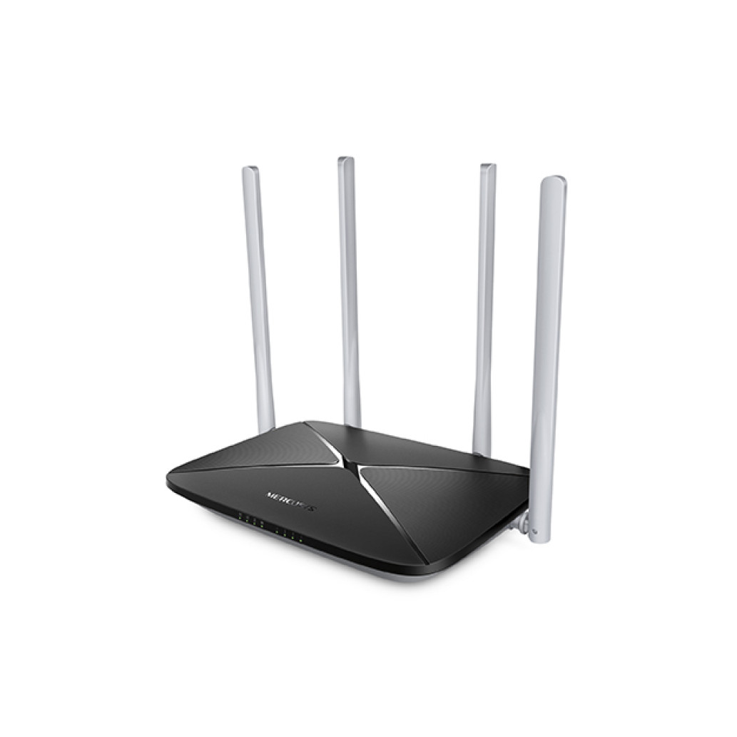 Mercusys AC12. Pas WLAN: dvopasovni (2,4 GHz / 5 GHz), vrhunski standard WLAN: Wi-Fi 5 (802.11ac), hitrost prenosa podatkov WLAN (maks.): 867 Mbit / s. Vrsta vmesnika Ethernet LAN: Fast Ethernet, Ethernet LAN hitrosti prenosa podatkov: 10,100 Mbit/s, kabelska tehnologija: 10 / 100Base-T (X). Generacija mobilnega omrežja: 4G. Podprti varnostni algoritmi: WPA-PSK, WPA2-PSK. Vrsta izdelka: Namizni usmerjevalnik, Barva izdelka: Črna