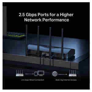 • 2,5G vrata:  1x 2,5 Gbps WAN vrata, 1x 2,5 Gbps LAN vrata in 2x 1 Gbps LAN vrata prebijejo ozko grlo 1Gb in tako vaše naprave popeljejo do največje zmogljivosti.