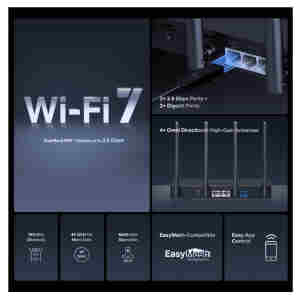 • Najnovejši WiFi 7:  Opremljen s 160 MHz kanali, 4K-QAM, MLO in drugimi funkcijami, ki jih ponuja WiFi 7, bo vaše omrežje imelo osupljivo zmogljivost.