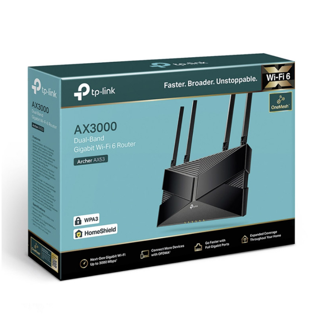 Usmerjevalnik brezžični TP-Link Archer AX53 WiFi6 802.11ax AX3000 2402Mbit/s dualband 4xLAN 4x antena (ARCHER AX53)Usmerjevalnik brezžični TP-Link Archer AX53 WiFi6 802.11ax AX3000 2402Mbit/s dualband 4xLAN 4x antena (ARCHER AX53)