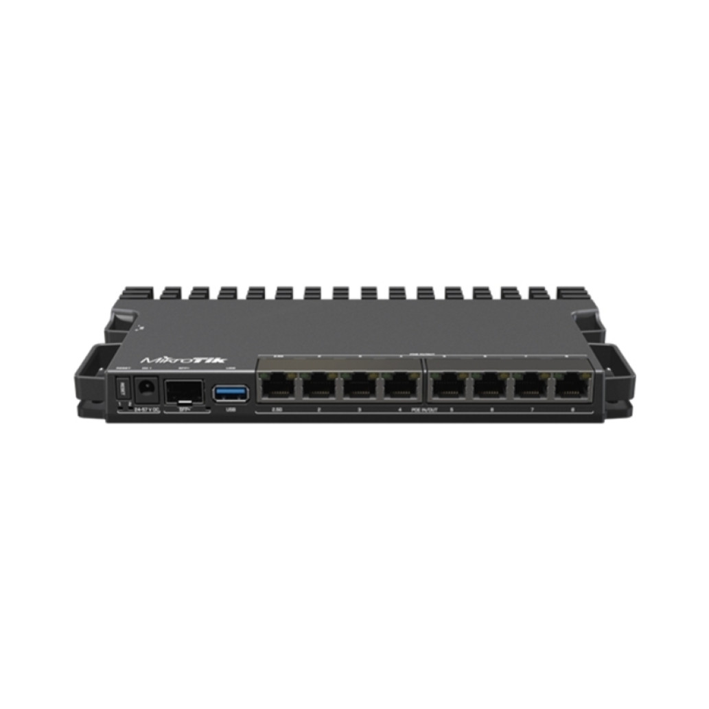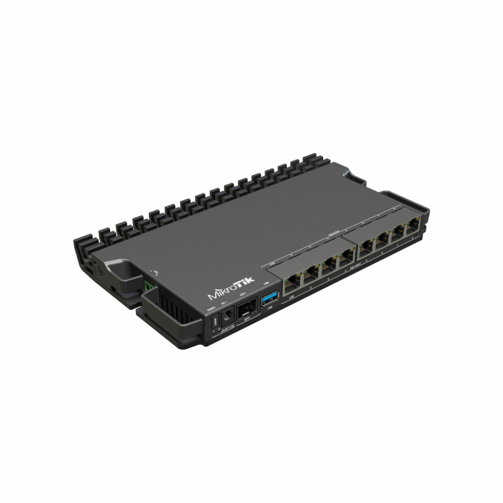 Usmerjevalnik MikroTik RB5009UPr+S+IN omogoča 7 (sedem) Gigabit Ethernet priključkov, ena vrata 2,5 Gigabit, za optično povezljivost pa poskrbi priključek z 10Gigabit Ethernet SFP+.