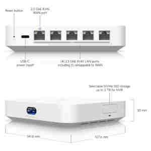 Ubiquiti Cloud Gateway Max UCG-MAX-NS je kompakten 2.5G usmerjevalnik, ki podpira več kot 30 UniFi naprav in preko 300 uporabnikov. 1,5 Gbps IPS routing, kar zagotavlja hitro in varno delovanje omrežja. Poleg tega ima možnost izbire NVR shranjevanja, kar omogoča nadzor nad shranjevanjem videoposnetkov. Idealna rešitev za napredna omrežja z visoko zmogljivostjo in nadzorom.