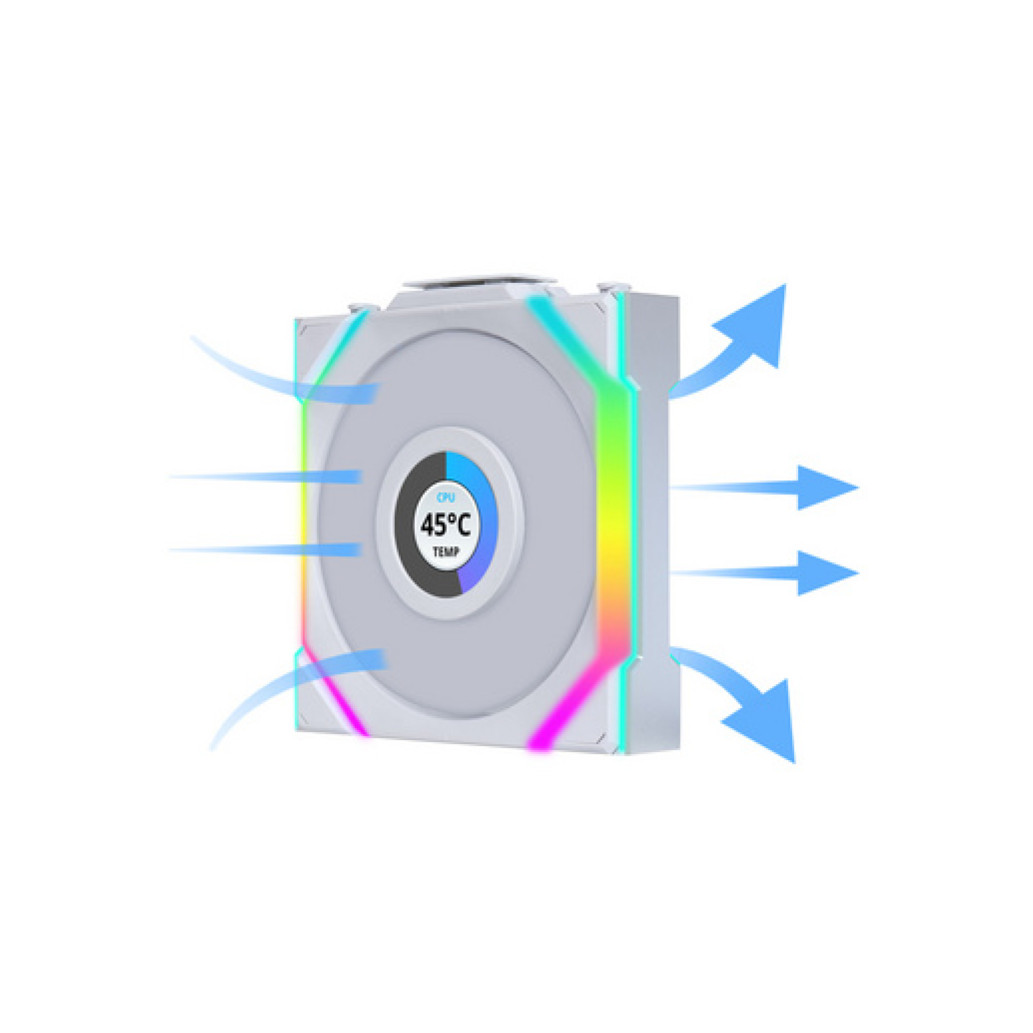 Ventilator je opremljen z 4 cm LCD IPS zaslonom, ki se preprosto upravlja z L-Connect 3 programsko opremo. Zaslon ima 500 nit svetilnosti, 400×400 px resolucijo ter prikazuje 24-bit SRGB barve. Omogoča preprost pregled nad npr. obremenitvijo procesorja, temperaturo komponent ali hitrost ventilatorja. Prilagodite ga lahko tudi z lastnimi slikami, videi ali prednastavljenimi animacijami.