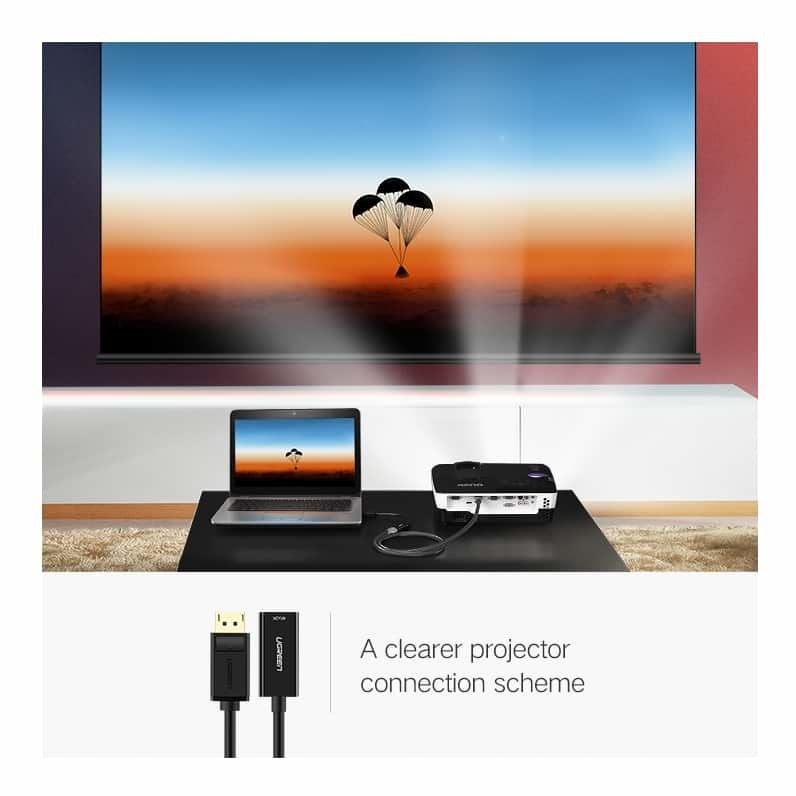 Pretvornik Ugreen DisplayPort v HDMI lahko brezhibno poveže prenosni računalnik, namizno ali grafično kartico, opremljeno s tehnologijo DisplayPort, na HDTV, monitor ali projektor z vhodom HDMI. Lahko prenaša tako avdio in video iz računalnika na HDTV zaslon in podpira video ločljivosti do 4K, kar je idealno za vašo pisarno, zaslon za domače razvedrilo, konferenčne sobe, sejme in drugo.
