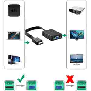 1.Ta adapter ni dvosmeren in lahko podpira samo signal iz naprav HDMI na zaslon VGA. Za napravo vira VGA za pretvornike HDMI, preverite postavko pretvornik VGA v HDMI (ASIN: B00QUWEBXE & B00QUWEC06)