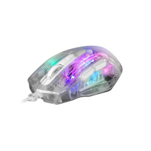 Marvo M413 Prism 40 je igralna miška z osupljivo prosojno zasnovo in RGB osvetlitvijo, ki izboljša vizualno izkušnjo med igranjem. Opremljena je s šestimi programsko nastavljivimi gumbi in spodnjim gumbom za prilagajanje osvetlitve, kar omogoča prilagoditev po meri. Natančen senzor ponuja nastavljivo ločljivost od 1200 do 7200 DPI, kar zagotavlja optimalno odzivnost in nadzor v vsaki situaciji. Povratna hitrost znaša 125 Hz, levi in desni gumb pa imata življenjsko dobo do 3 milijone klikov, kar zagotavlja dolgotrajno vzdržljivost in zanesljivost.