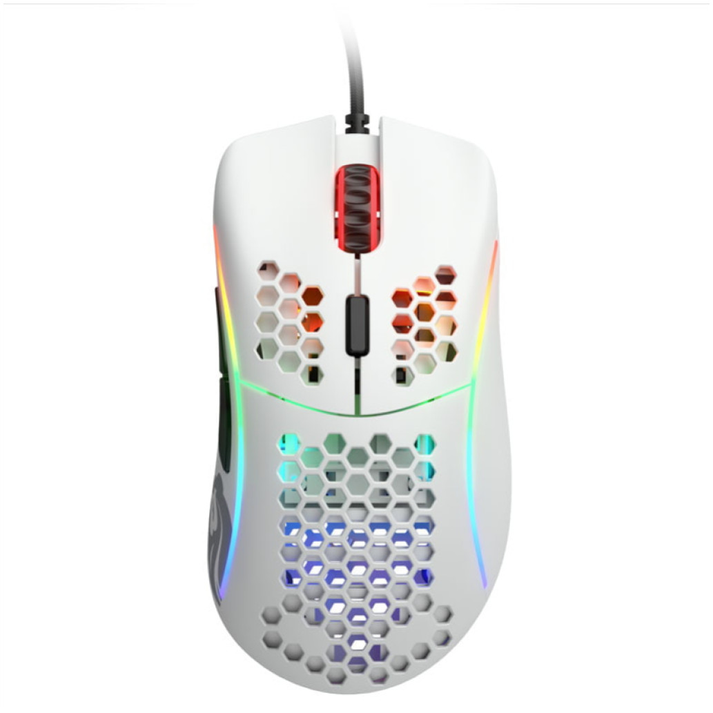 Glorious PC Gaming Race Model D. Oblika: desno. Tehnologija zaznavanja gibanja: Optična, Vmesnik naprave: USB Type-A, Ločljivost gibanja: 12000 DPI, Odzivni čas: 1 ms, Tip gumba: Pritisnjeni gumbi, Število gumbov: 6, Vrsta pomika: Kolo, Pospešek (Maks.): 50 G Barve osvetlitve: več. Vir napajanja: kabel. Barva izdelka: Bela
