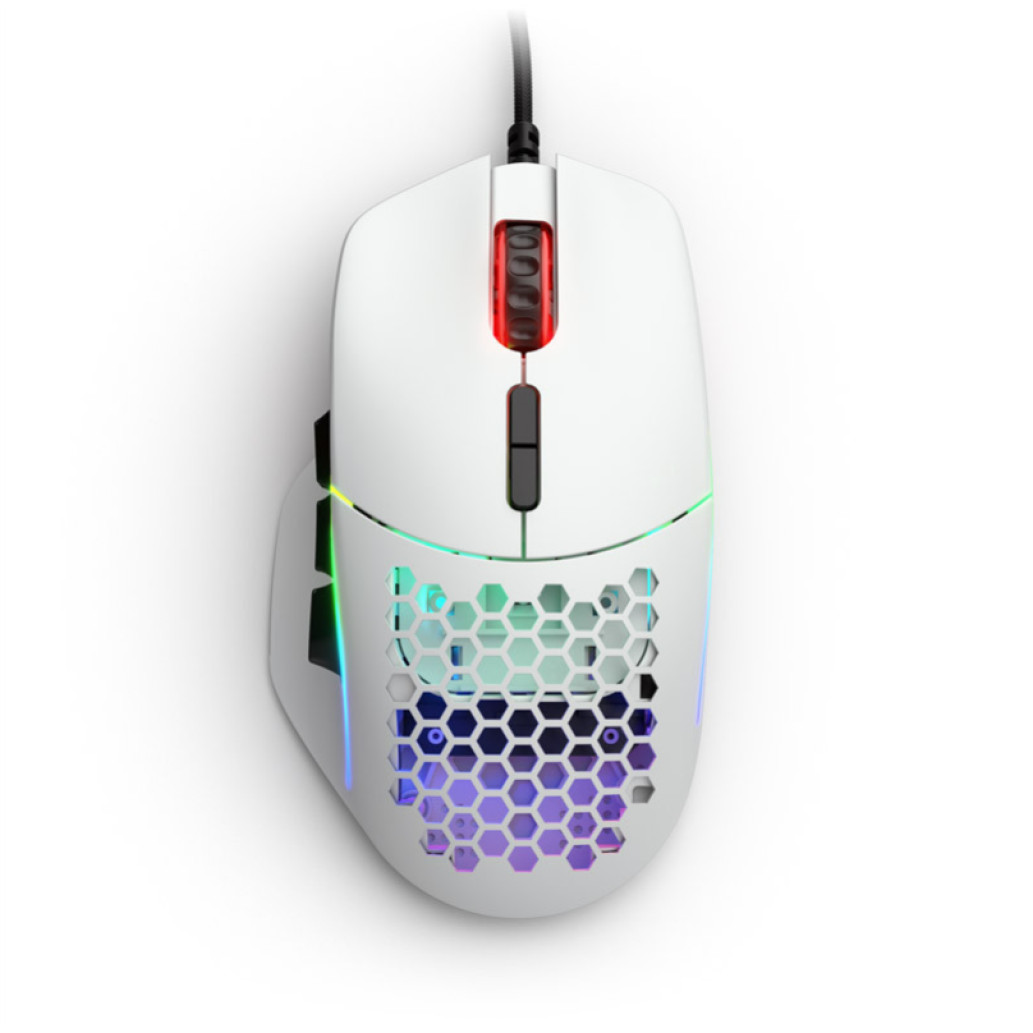 Glorious PC Gaming Race Model I. Faktor oblike: desno. Tehnologija zaznavanja gibanja: Optični, Vmesnik naprave: USB Type-A, Ločljivost gibanja: 19000 DPI, Odzivni čas: 1 ms, Tip gumba: Pritisnjeni gumbi, Število gumbov: 9, Vrsta drsenja: Kolesce, Pospešek (maks.): 50 G Barve osvetlitve: Multi. Vir napajanja: kabel. Barva izdelka: Bela