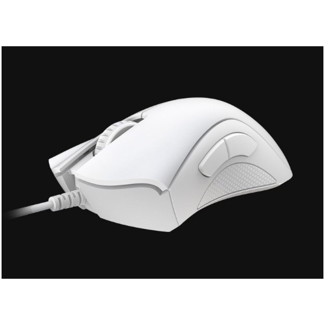 Razer DeathAdder Essential. Faktor oblike: desno. Tehnologija zaznavanja gibanja: Optična, Vmesnik naprave: USB Type-A, Ločljivost gibanja: 6400 DPI, Vrsta gumbov: Pritisnjeni gumbi, Število gumbov: 5, Vrsta pomika: Kolo, Pospešek (Max): 30 G. Vir napajanja: Kabel. Barva izdelka: Bela