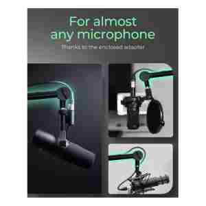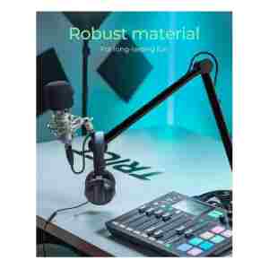 Profesionalna nosilna roka za mikrofon (boom arm) IB‑MAG103B‑T je zasnovana za uporabnike, ki želijo mobilnost, stabilnost in kvalitetno montažo mikrofona. Ima robustno konstrukcijo iz aluminija, plastike in jekla, notranje vzmeti v vsaki sekciji kraka za blaženje tresljajev, vrtljivost 360° in ročno zategovanje za fiksiranje položaja. Opremeljena je s sponko za namizno pritrditev ali vijačno montažo skozi nosilno površino, ki ustreza za nosilne površine od 10 do 60 mm. Povezava mikrofona je preko univerzalnega navoja (3/8″ in 5/8″), kar omogoča združljivost s številnimi tipi dinamičnih in kondenzatorskih mikrofonov. IB‑MAG103B‑T ima tudi sponke za upravljanje kablov, ki ohranjajo okolico čisto in urejeno.