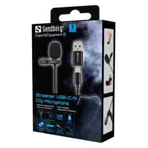 Podatki o pakiranju: 1x Sandberg Streamer USB Clip Microphone, 1x sponka, 1x torbica za shranjevanje, 1x adapter USB-C na USB-A, 1x navodila za uporabo