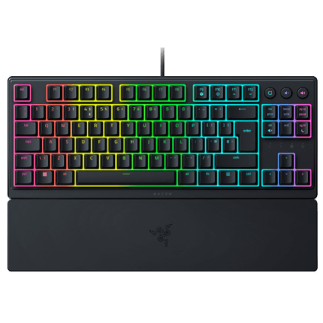 Ornata V3 Tenkeyless je opremljena z nizkimi tipkami. Tipkovnica je visoka 31 in vsebuje Razer Mecha-Membranska stikala, ki podajo lep očutek tipkanja z mehkim zaključkom. Tipke z UV prevleko so bolj odporne na obrabo in praske.