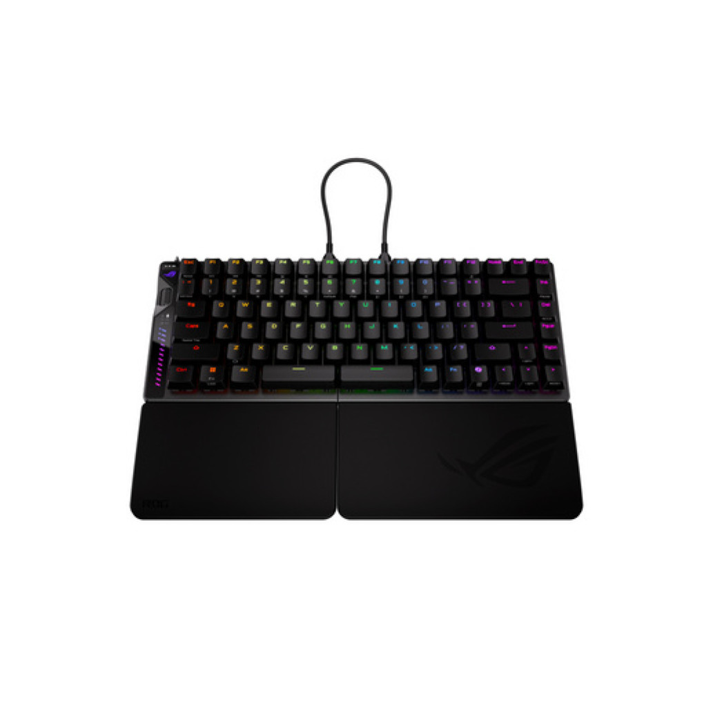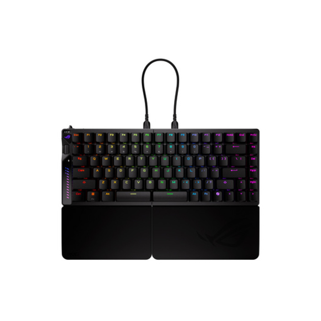 - Zamenljiva magnetna stikala ROG HFX V2 z izboljšani pritiski tipk, možnostjo nastavitve točke proženja med 0,1–3,5 mm in natančnim prilagajanjem v korakih po 0,01 mm