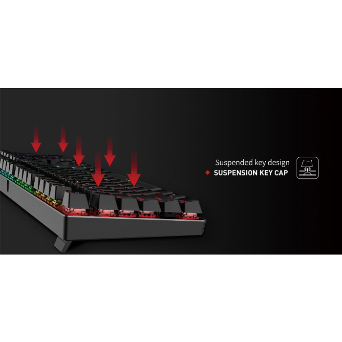 Mehanska USB tipkovnica za kar najboljše doživetje med igranjem iger ali vsakodnevno uporabo. Čudovita LED osvetlitev z možnostjo različnih nastavitev osvetlitve in tipke, ki omogočajo shranitev določenih konfiguracij osvetlitve tipk, bo olajšalo igranje ali vsakodnevno uporabo tipkovnice. Mehanske tipke z Outemu Blue stikali omogočajo natančne pritiske, anti-ghosting efekt pa je omogočen na vseh tipkah. Tipkovnica omogoča tudi zaklep tipk Win in Fn, kar prepreči neželene izhode iz igre.