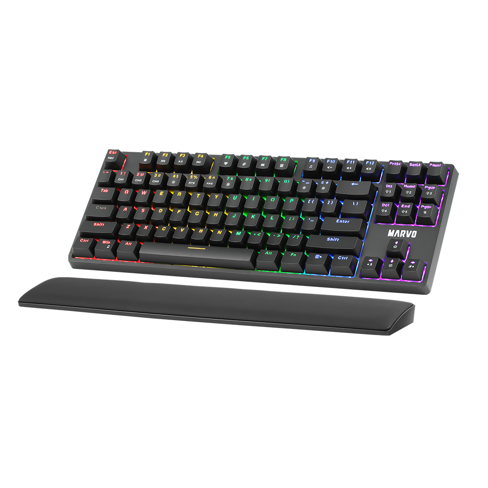 MARVO KG947 je mehanska igralna tipkovnica, ki jo odlikujejo RGB osvetlitve, usnjeni naslon za zapestje in neverjetna vzdržljivost. Okvir iz letalskega jekla in stikala, ki prenesejo na milijone pritiskov, zagotavljata dolgo življenjsko dobo in nemoteno uporabo. Vsi pritiski tipk bodo pravilno prepoznani in zabeleženi, saj tipkovnica omogoča N-key Rollover in ima 19 anti-ghosting tipk.