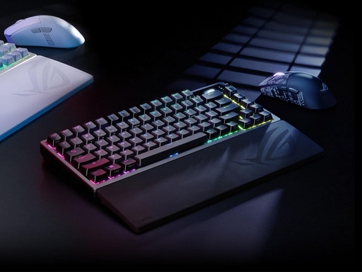 Naslon prinaša mehko podporo vašim zapestjem pri dolgotrajni uporabi tipkovnice. Ima vtisnjen ROG znak in se odlično poda drugim ROG izdelkom. Primeren je za 75% tipkovnice.