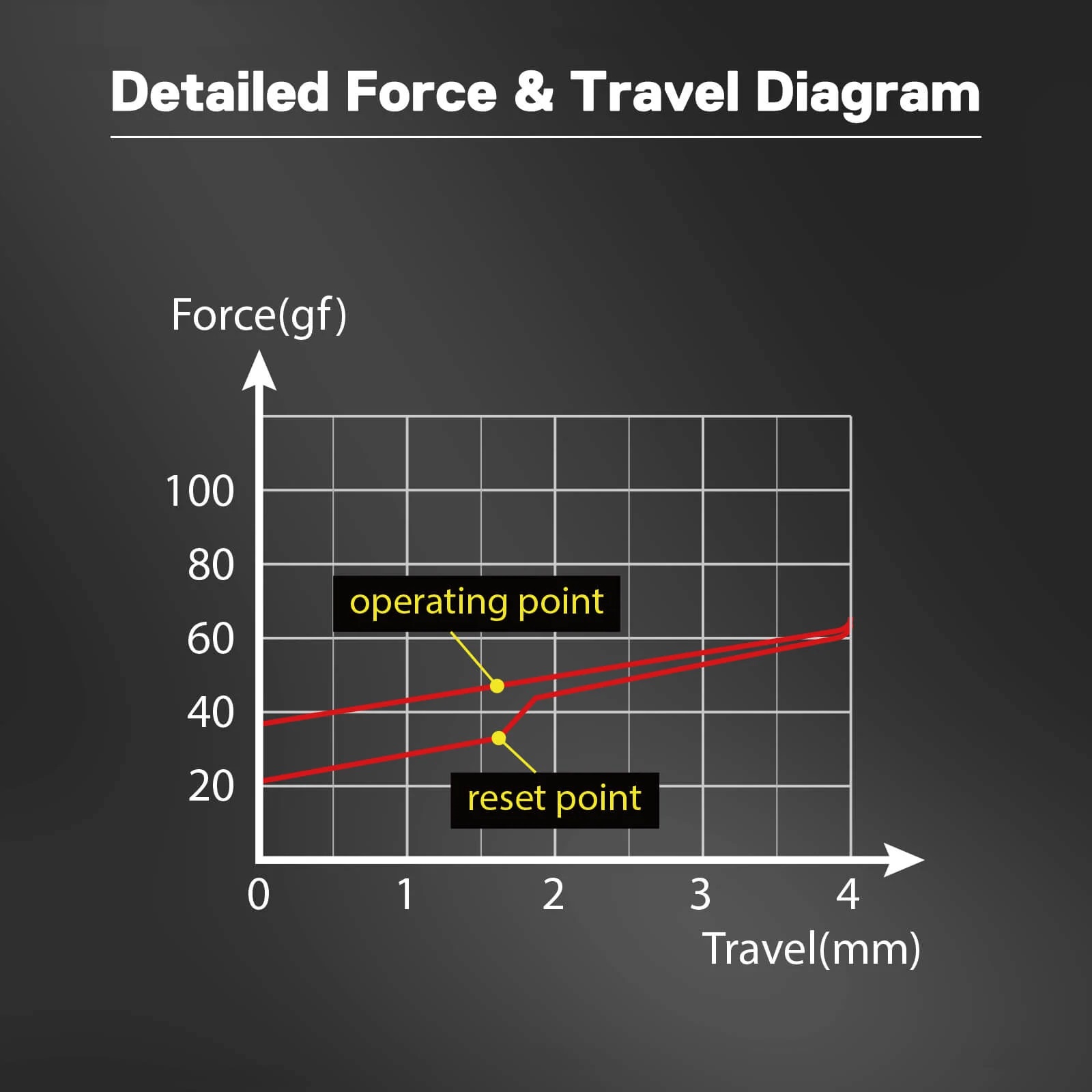 - Skupno gibanje 4,0 mm Predhodno gibanje: 1,3 mm ± 0,5 mm