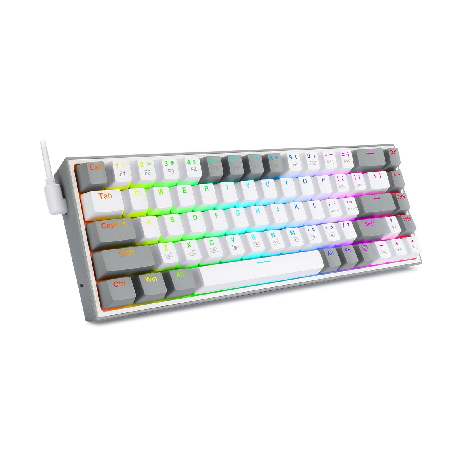 Žična tipkovnica z razporeditvijo 68 tipk – Redragonova 65-odstotna razporeditev K631 v žičnem načinu ustreza uporabnikovim potrebam po ločenih puščičnih tipkah in dodatnih funkcijskih tipkah. Izjemno kompaktna in lahka tanka zasnova 68 tipk sprosti dragoceni prostor na mizi za manj nereda.