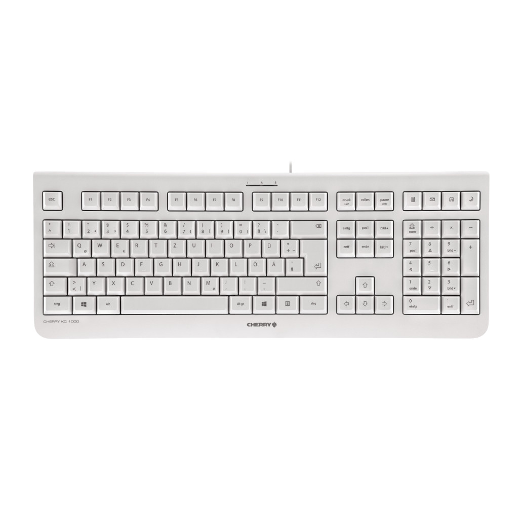 CHERRY KC 1000 je solidna CHERRY tehnologija z odlično vrednostjo za denar. Moderna, ravna oblika z mehkimi, tihimi in trajno odpornimi tipkami. Univerzalno, zanesljivo in optimizirano za profesionalno uporabo.