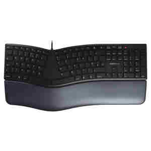 Ergonomska tipkovnica, kot je CHERRY KC 4500 ERGO, lahko zagotovi preprosto olajšanje. Zaradi posebne zasnove vaše roke in roke same zasedejo bolj naraven položaj na tej kabelski tipkovnici. Vaša ramena in hrbet se razbremenijo zaradi sproščene drže. Stres se zmanjša. Izjemno mehak naslon za dlani s spominsko peno preprečuje točke pritiska. Vaše roke udobno počivajo na tipkovnici.