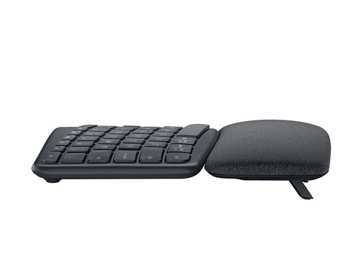 ERGO K860 omogoča bolj naravno držo vaših dlani, zapestij in prstov. Dokazano je, da v povprečju za 21% zmanjša mišično aktivnost v zgornji trapezasti mišici (ključna mišica v sredini hrbta, ki stabilizira in pripomore k premikanju ram in vratu). Nogice omogočajo naklon 0°, -4° in -7° ter tako zagotavljajo optimalno ergonomsko držo, ne glede na to ali pri uporabi stojite ali sedite.