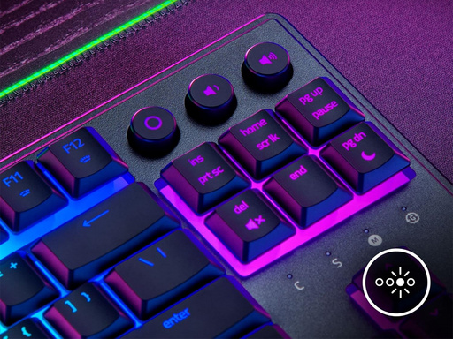 Tipkovnica ima priročne multimedijske gumbe, ki nudijo enostavno upravljanje. Za pravo atraktivnost pa je tipkovnica opremljena z 8 RGB LED conami, ki nudijo 16,8 milijonov barv in množico različnih RGB efektov.