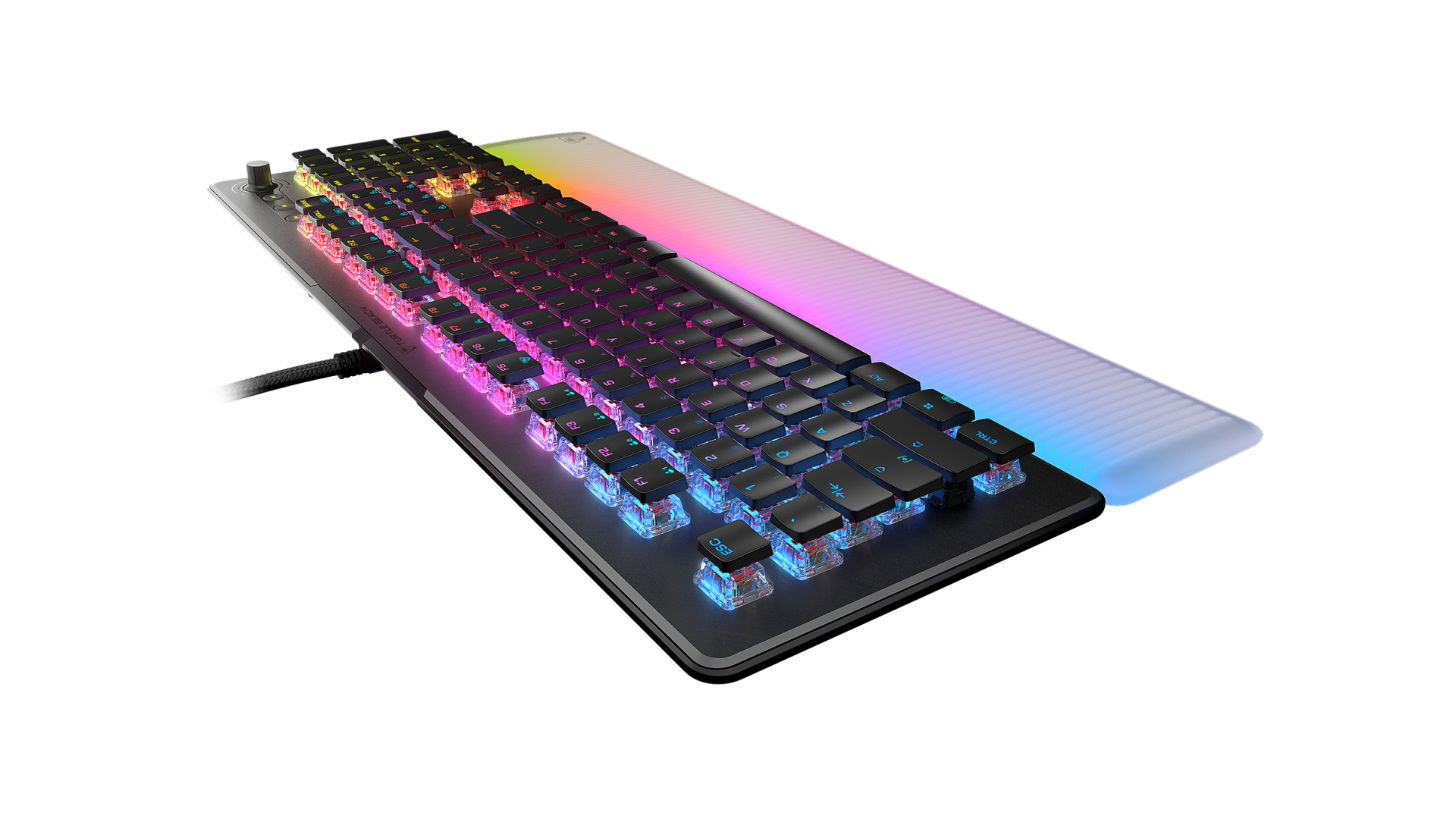 Optično-mehanska igralna tipkovnica Vulcan II Max združuje vzdržljivost, zmogljivost in funkcionalnost v bleščeči zasnovi z RGB osvetlitvijo. Ekskluzivna optična stikala TITAN II imajo gladko, hiperhitro aktiviranje, predhodno namazane stabilizatorje in neverjetno vzdržljivost z življenjskim ciklom 200 milijonov klikov. Občutite svoje pritiske s 24 večfunkcijskimi pametnimi tipkami z edinstveno namensko diodo LED, ki označuje, kdaj so aktivne sekundarne funkcije. Vstopite v igralni način, da dostopate do tehnologije podvajanja tipk Easy-Shift [+]™ in odklenete drugo programsko nastavljivo funkcionalno plast. Snemljiva, prosojna silikonska opora za dlani osvetlji delovno okolje z živahnimi barvami AIMO RGB že takoj, ko je priložena k tipkovnici, vaše dlani pa bodo udobno podprte skozi cel dan.