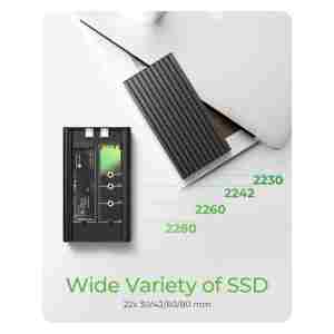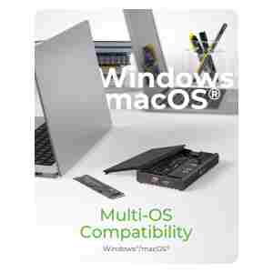 IB-2817M-C32 je napredno ohišje za dva M.2 NVMe SSD-ja, zasnovano za visokozmogljive delovne tokove, hiter dostop do podatkov in profesionalna delovna okolja. Ohišje uporablja priklop USB-C 3.2 Gen 2×2, ki zagotavlja izjemno hitro izmenjavo podatkov, medtem ko vsaka M.2 reža deluje preko PCIe Gen3x2 pasovne širine za optimalno odzivnost in stabilnost. Namestitev je povsem preprosta, saj toolless zasnova omogoča vstavljanje diskov brez orodja, gumijasto pritrdilo pa zanesljivo drži SSD-je vseh standardnih dolžin od 2230 do 2280. S tem enotnim ohišjem lahko uporabljaš celoten nabor NVMe formatov, ne da bi potrebovala različna ohišja za posamezne velikosti. Priložen USB-C na USB-C kabel zagotavlja hitro povezljivost z računalnikom, dodatni kabel za pomožno napajanje pa omogoča stabilno delovanje tudi pri uporabi dveh SSD-jev hkrati. Naprava je združljiva z operacijskima sistemoma Windows in macOS, kar zagotavlja brezhibno integracijo v različna delovna okolja.