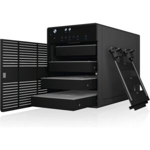 IB-3740-C31 je zmogljivo 4-režno USB-C ohišje za 2,5″ in 3,5″ SATA diske. Podpira posamezni način (SINGLE), kjer je vsak disk dostopen ločeno. USB 3.2 Gen 2 zagotavlja hitrosti do 10 Gbit/s, aluminijasto ohišje in temperaturno krmiljen 80 mm ventilator pa skrbita za učinkovito hlajenje. Z odstranljivimi pladnji je menjava diskov enostavna, LED indikatorji pa prikazujejo stanje delovanja in napake.