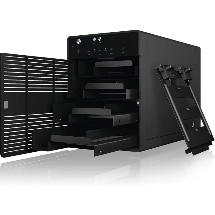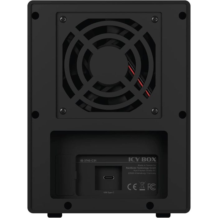 IB-3740-C31 je zmogljivo 4-režno USB-C ohišje za 2,5″ in 3,5″ SATA diske. Podpira posamezni način (SINGLE), kjer je vsak disk dostopen ločeno. USB 3.2 Gen 2 zagotavlja hitrosti do 10 Gbit/s, aluminijasto ohišje in temperaturno krmiljen 80 mm ventilator pa skrbita za učinkovito hlajenje. Z odstranljivimi pladnji je menjava diskov enostavna, LED indikatorji pa prikazujejo stanje delovanja in napake.