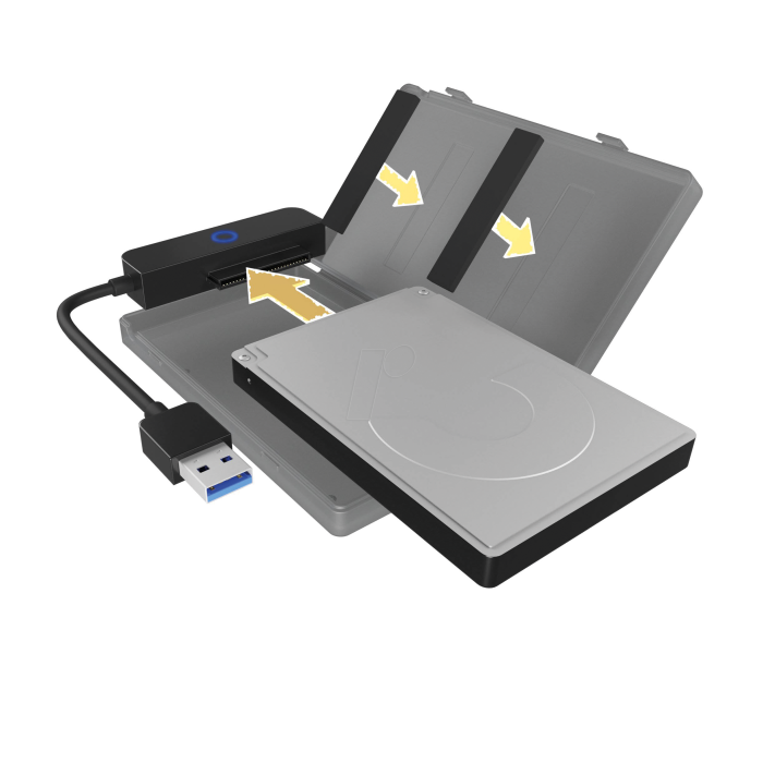 IB-AC603b-U3 je kompakten USB 3.2 Gen 1 adapter za 2,5″ SATA diske z višino do 9,5 mm. Omogoča hitro namestitev brez orodja ter prenos podatkov do 5 Gbit/s. Integriran 16 cm USB-A kabel zagotavlja enostavno povezavo, priložena zaščitna škatlica pa ščiti disk pred prahom in udarci. Podpira UASP, HotSwap in Plug & Play ter deluje v Windows, macOS in ChromeOS.