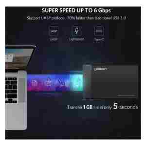 UGREEN USB C 2.5″ ohišje za trde diske nudi preprosto uporabo vaših trdih diskov. Trdi disk varuje pred morebitnimi praskami in poskrbi da lahko vaš Sata trdi disk uporabljate kot prenosni disk.