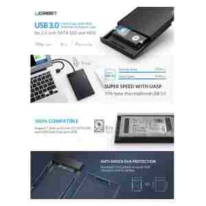 Ugreen 2,5-palčni HDD na trdi disk na USB 3.0 varuje vaš 2,5-palčni HDD in SSD pred stresanjem in praskami ter zlahka poveže trdi disk z računalnikom ali prenosnim računalnikom za prenos podatkov.