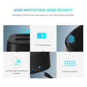 Ta priključna postaja je veliko varnejša od ohišja trdega diska ali kabla SATA. Priključna postaja je zasnovana tako, da bo vaš trdi disk učinkoviteje razpršil toploto in preprečil pregrevanje; Funkcija samodejnega spanja po približno 3 minutah podaljša življenjsko dobo vašega trdega diska.