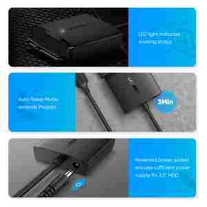 2. Za 3,5 “” HDD / SDD priključite 12V / 2A napajalnik za stabilen prenos (napajalnik ni vključen v paket).