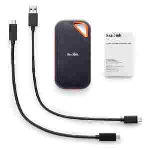 1x zunanji SSD disk, 1x USB-C na USB-C kabel, 1x USB-C na USB-A kabel
