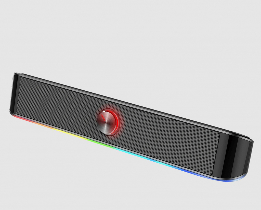 REDRAGON ADIEMUS GS560 je »sound bar« z RGB osvetlitvijo. Ima nadgrajen zvočnik, ki zagotavlja jasno in kristalno kakovost zvoka v kombinaciji z bogatimi basi. Zvočnik ima štiri različne načine osvetlitve, tako dinamično kot statično LED osvetlitev. Osvetlitev ozadja se sinhronizira s predvajanjem glasbe. Natančen in kompakten gumb za glasnost v kombinaciji s stikalom za vklop / izklop vam ponuja priročno in natančno nastavitev glasnosti. Priključek USB z 3,5-milimetrskim zvočnim in mikrofonskim kablom omogoča uporabo na osebnih računalnikih, TV-jih, prenosnikih in pametnih telefonih.