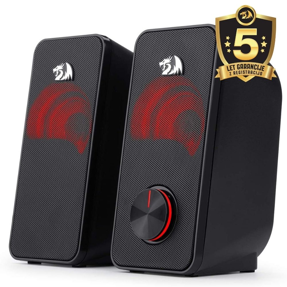 Redragon STENTOR GS500 sta zvočnika za PC, s svojo kompaktno obliko prihranijo prostor na katerem koli namizju. Zvočnika delujeta zelo enostavno (“Plug & Play”) za široko združljivost – USB s 3,5-milimetrskim AUX kablom omogoča, da lahko zvočnike uporabljate za osebne računalnike, televizorje, prenosnike in pametne telefone. Zvočniki so osvetljeni z LED rdečo osvetlitvijo. Gumb za glasnost v kombinaciji s stikalom za vklop / izklop vam zagotavlja priročno in natančno nastavitev glasnosti.
